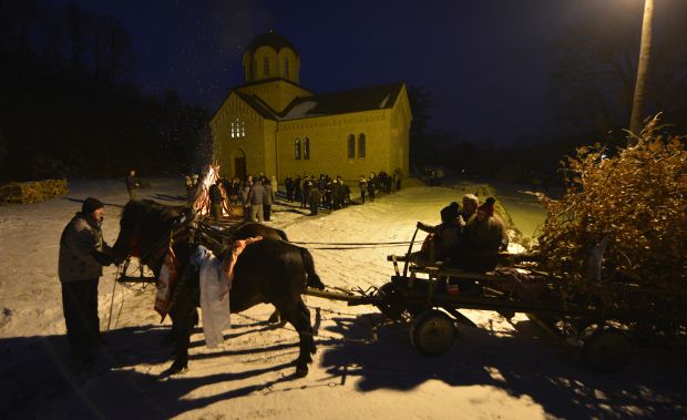 Pravoslavni vernici slave Badnje veče, pripremajući se za Božić, dan rođenja Isusa Hrista