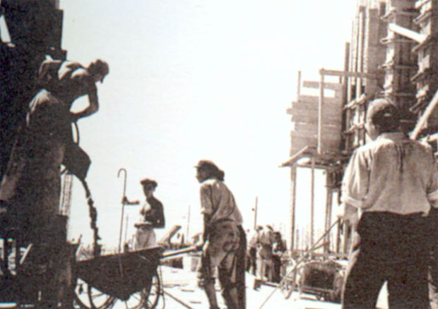 PRE početka gradnje močvarno područje današnjeg Novog Beograda posipano je peskom iz Save i Dunava kako bi se izdiglo iznad plavnih rečnih i podzemnih voda. Radilo se danonoćno, ručno posipao pesak i mešao malter, a konjska zaprega prenosila je teži materijal. Kroz gradilište je prošlo na hiljade srednjoškolaca, studenata, radnika i inženjera...