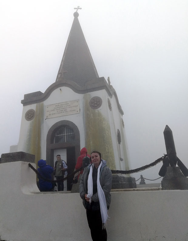 Reporter "Novosti" pred kapelom na vrhu Kajmakčalana