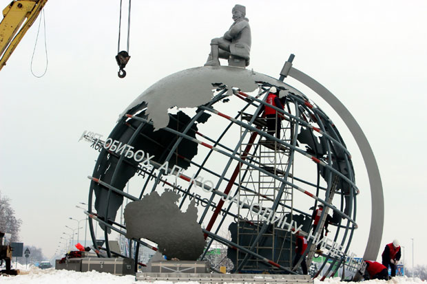 Spomenik svetskom putniku na ulasku u Jagodinu, Foto Tanjug
