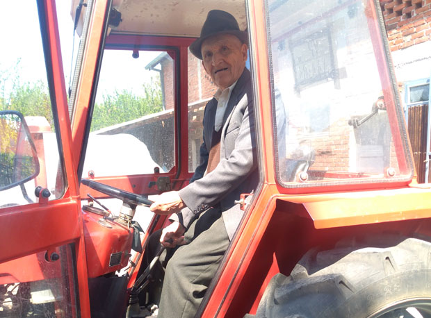 Krotak i vedar, kao da njegovo postignuće već nisu pozne godine i duh mlađi od njega, pokazuje i kako vozi traktor. Jesenas je i orao, da pripomogne sinu.
