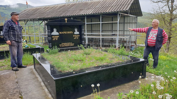 Rođaci Rajko (levo) i Momir Marković kraj grobnice koja se nalazi u dve države