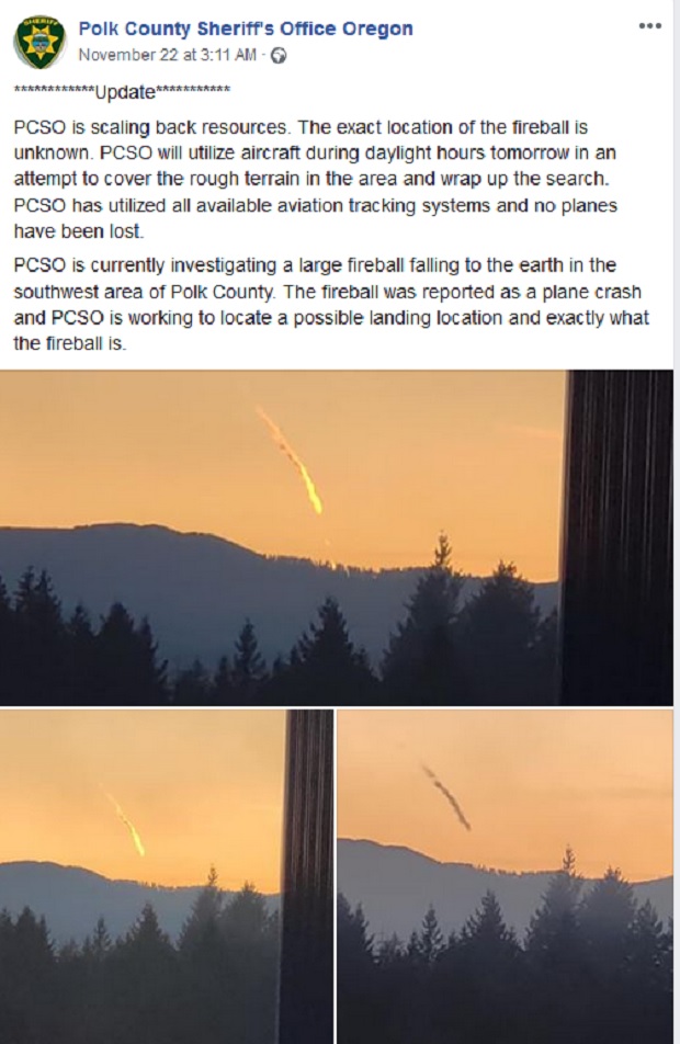 Zvaničnici istražuju "veliku vatrenu loptu koja je pala na zemlju" u blizini grada Salema u Oregonu, navodi "Statesman Journal".