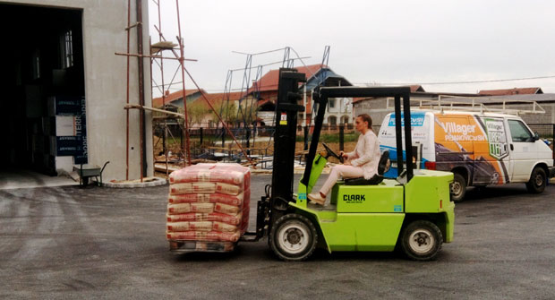 Ona u porodičnoj firmi kad god zatreba sedne za volan viljuškara i utovara građevinski materijal u kaminon. Kaže da je to još uvek neobično iako smo debelo zakoračili u 21 veku.