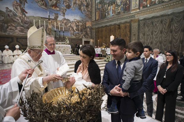 Poglavar Rimokatoličke crkve je tokom dvočasovne ceremonije krstio 18 devojčica i 16 dečaka, uključujući dva para blizanaca a majkama poručio da se ne stide ako bebe zaplaču