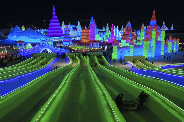 Među najvećim atrakcijama su vožnje sankama na reci Songhua, grupna venčanja i ogromne skulpture od leda i snega koje oblikuju hiljade umetnika i radnika.