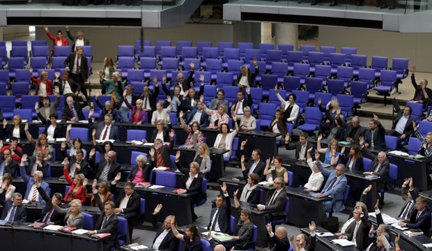 Nemačka kancelarka Angela Merkel podržala je stav svoje Demohrišćanske unije da turski masakr nad Jermenima treba nazvati genocidom, ali je elegantno izbegla da prisustvuje glasanju "zbog unapred ugovorenih obaveza, uključujući i susret sa generalnim sekretarom NATO, Jensom Stoltenbergom."