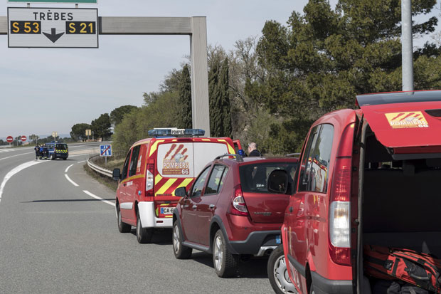 Sve je počelo u petak ujutro kada je Lakdim na ulicama grada Karkasona na jugu Francuske, oružanim prepadom ukrao beli automobil marke "opel". U tom napadu ranio je vozača i ubio suvozača. Ubrzo posle toga, zapucao je na četiri pripadnika specijalne policije koji su džogirali u trenerci, sa profesionalnim oznakama na njoj, u blizini kasarne u Karkasonu. Jednog specijalca je povredio u rame, a onda mu se zaglavilo oružje pa je pobegao.