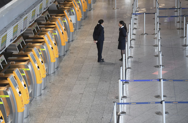 Hiljade putnika na četiri nemačka aerodroma, uključujući najveći u Frankfurtu, našlo se danas u nevolji zbog štrajka kopnenog aerodromskog osoblja i drugih zaposlenih u javnom sektoru širom zemlje koji su nezadovoljni platama
