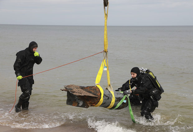 Na delu obale prečnika 2,5 kilometara, plaže i biciklističke staze biće zatvorene dok pirotehničari ne uspeju da bombe nađene kraj plaže bezbedno izvade iz mora i prevezu na poligon gde će ih neutralisati.Bombe su otkrivene u petak, a lokalnim vlastima se prvo činilo da je to burad sa nepoznatom supstancom, ali pokazalo se da se radi, što je čest slučaj širom Poljske, o neeskplodiranim avionskim ratnim bombama.