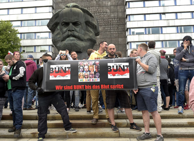 Pravi haos tokom demonstracija kod spomenika Karlu Marksu u ponedeljak uveče u Kemnicu, nastao je kad su desničari u manjim grupama počeli da jure građane arapskog izgleda i da ih besomučno tuku. Okupilo se oko 6.000 ekstremista, a povređeno je šest osoba. Nemački mediji su demonstracije opisali kao scene lova na ljude i konstatovali da se radi o "bankrotu policije koja je izgubila kontrolu nad Kemnicom".