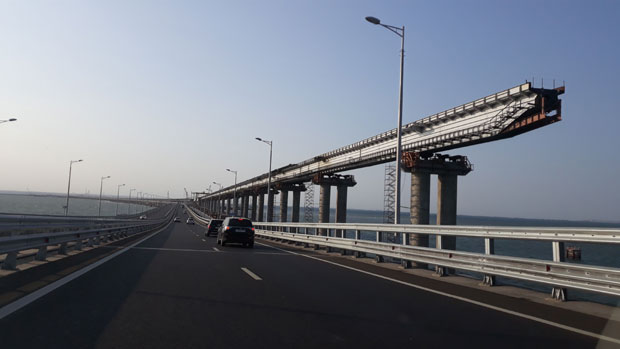 Prelazak mosta dugačkog 19 kilometara, koji "drži" 598 stubova i koji je za dve i po godine izgradilo 3.000 ruskih kompanija, traje 15 minuta. U oba smera saobraćaj je bio veoma živ, jer se bliže početak škole i kraj pune turističke sezone.