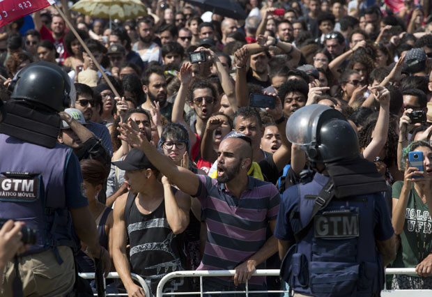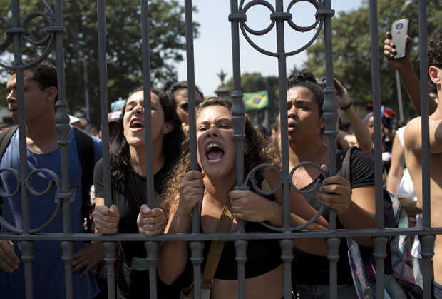 Okupljeni zahtevaju ulazak u zgradu kako bi videli šta je uništeno u ogromnom požaru, koji je noćas progutao 200 godina stari Nacionalni muzej, koji je čuvao eksponate egipatske, starogrčke i rimske umetnosti, kao i neke od prvih fosila pronađenih u Brazilu.