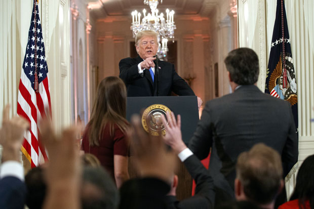 KONFERENCIJU za novinare predsednika SAD Donalda Trampa, dan posle izbora za Kongres, na kome su demokrate preuzele donji dom, a republikanci pojačali prisustvo u Senatu, zasenio je obračun šefa Bele kuće sa, doskora se činilo "nedodirljivom", američkom TV stanicom Si-En-En. Ova TV mreža, međutim, izvukla je deblji kraj, pošto je ponašanje njenog izveštača prema predsedniku, i zaposlenoj u njegovoj administraciji koštalo ovu televizijsku mrežu daljeg prisustva u Beloj kući.