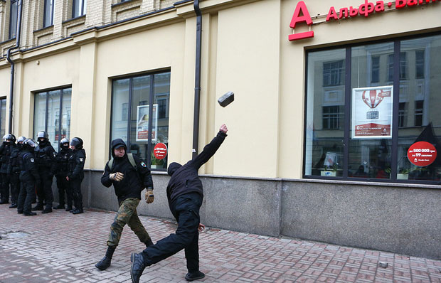 Ukrajinski nacionalisti su u Lavovu zapalili dve ekspoziture privatne ruske Alfa banke. Razbili su staklo i ubacili Molotovljev koktel. Vatra se brzo proširila i demolirala prostorije. Pre toga su zapaljene i poslovnice ruske Zberbanke i VTB.