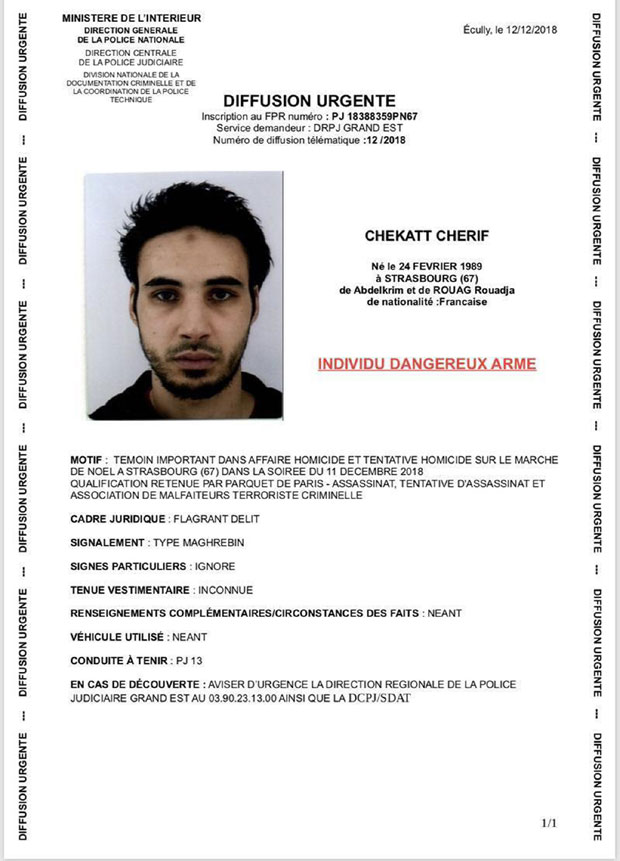 Francuska policija je identifikovala Šerifa Šekata (29), rođenog u Strazburu,kao osobu koja je u utorak uveče, na Božićnom vašaru u tom gradu, iz vatrenog oružja ubio tri, a ranio 13 osoba.