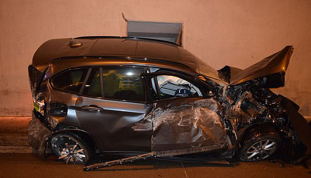Vozilo je, ostavljajući varnice iza sebe, udarilo u plafon i okrenulo se za 360 stepeni, a vozač nekim čudom nije povređen. Policija mu nije pronašla alkohol u krvi pa se sumnja da je zadremao za volanom na nekoliko sekundi.