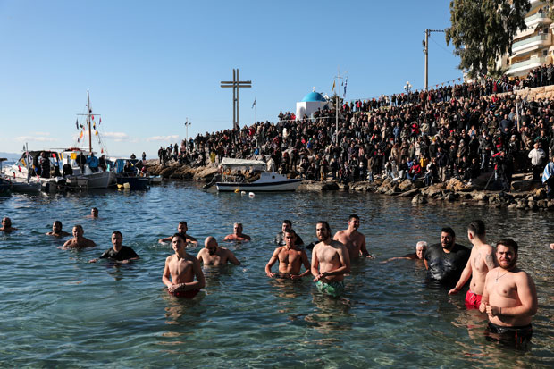 Grčki premijer Aleksis Cipras posetio je danas ostrvo Samotraki gde je prisustvovao liturgiji i potom ceremoniji plivanja za časni krst u luci Kamariotisa