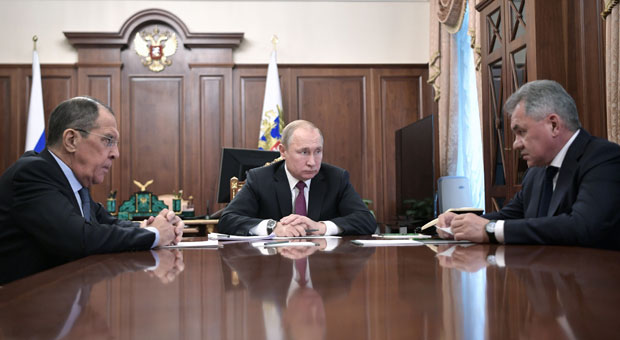 Sergej Lavrov, Vladimir Putin i Sergej Šojgu / Foto Tanjug-AP