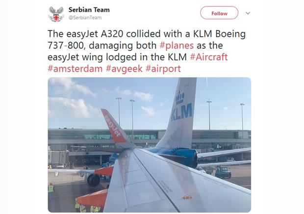 Putnici iz aviona odmah su na društvenim mrežama počeli da ostavljaju komentare "Krilo našeg aviona je na repu "KLM"-a", napisao je jedan putnik iz letelice "EasyJet"-a.
