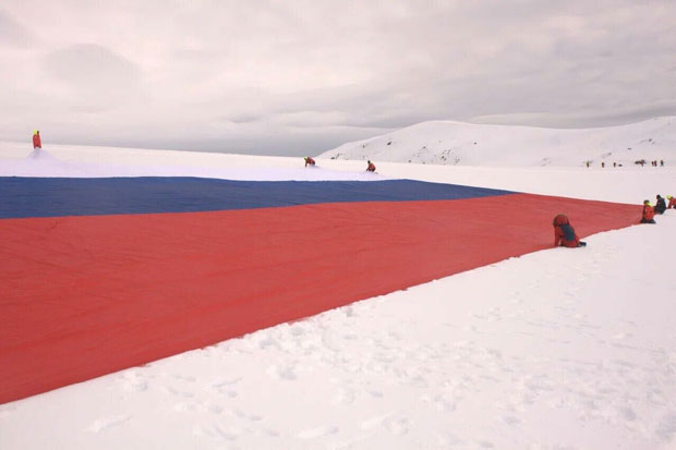 Motociklistički klub „Noćni vukovi“ i organizacija „Svi svetovi“ razvili su na Antarktiku najveću rusku zastavu, površine više od 1.400 kvadratnih metara