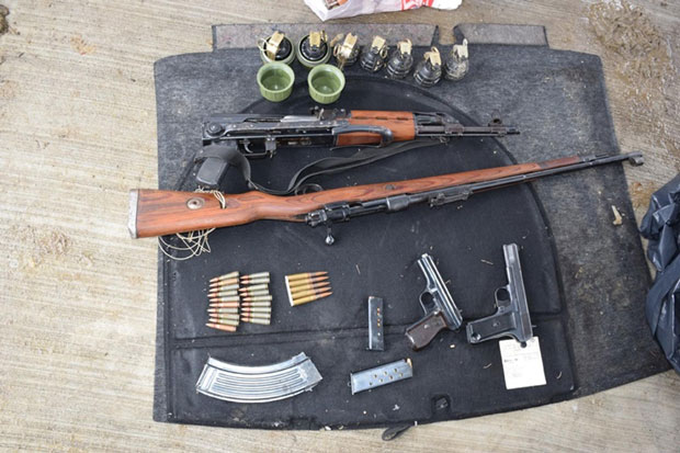 U vozilu je pronađeno sedam ručnih bombi M75, karabin M48, automatska puška, dva pištolja, 39 komada raznog streljiva i šaržer za automatsku pušku.
