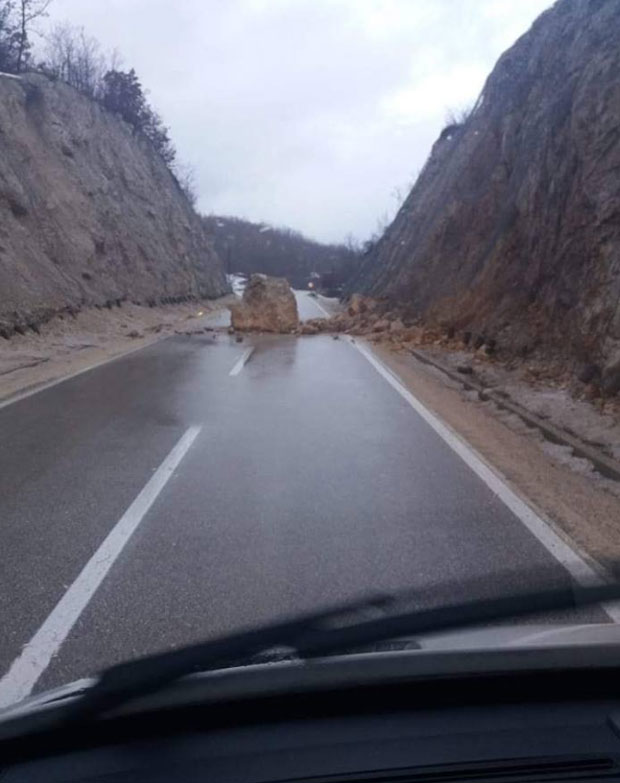 U kanjonu Pive, na deonici puta Plužine-Mratinje, došlo je do većeg odrona, zbog čega je taj put skoro blokiran.