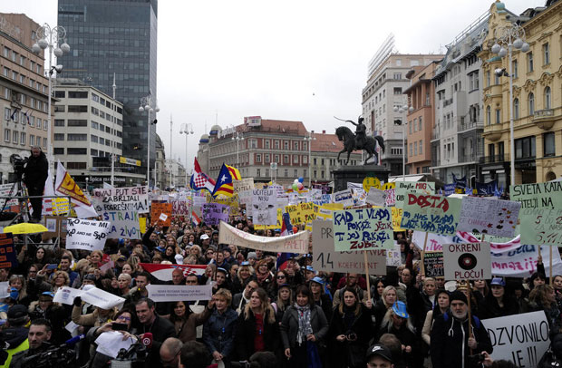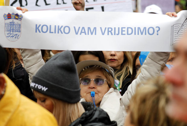 Više od 20.000 hrvatskih učitelja i profesora okupilo se danas na zagrebačkom Trgu bana Jelačića, tražeći veće plate i bolje uslove.