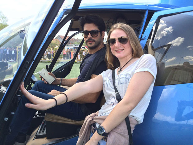 MADA je bilo planirano da Burak Ozčivit iz Novog Pazara ka srpskoj prestonici krene automobilom, po markantnog turskog glumca i njegovu petočlanu svitu posle doručka stigao je - helikopter! Tačnije, dva, beogradske škole za obuku pilota helikoptera i aviona "Helimaster". Naočiti Bali-beg bio je više nego iznenađen kada je video letelice, ali je zbunjenost brzo prešla u oduševljenje. Nije ni sanjao da će da leti i bio je uzbuđen zbog toga.