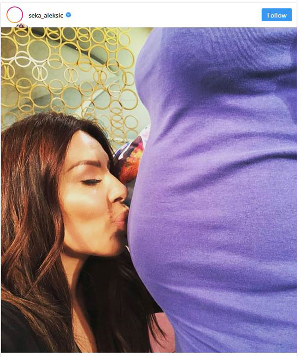 Pevačica Seka Aleksić je prva čestitala koleginici rođenje ćerke na "Instagramu", fotografijom na kojoj ljubi Slađin stomak, uz komentar:
