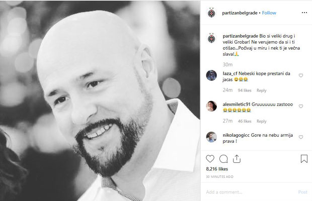 - Bio si veliki drug i veliki Grobar! Ne verujemo da si i ti otišao... Počivaj u miru i nek ti je večna slava - reči su kojima su se Partizanovci oprostili od Grua.