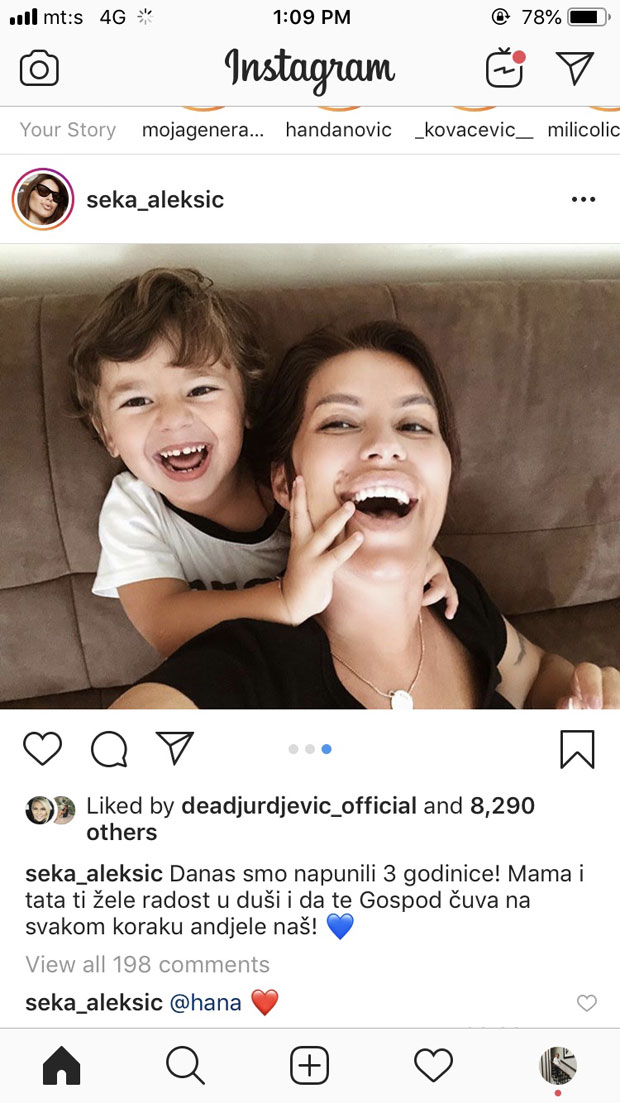 Pevačica Seka Aleksić podelika je preko svog instagram profila veliku radost sa svojim obožavaocima