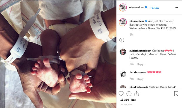 - I tako je naš život dobio novi smisao. Dobrodošla Nora Grejs Elis - napisala je Nina, koja je ovom objavom saopštila da se porodila 8. novembra.