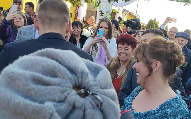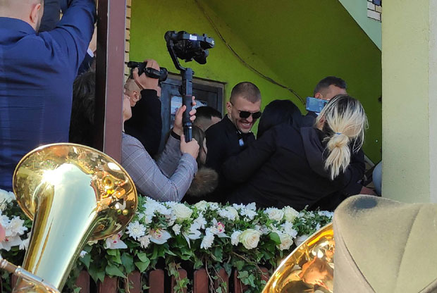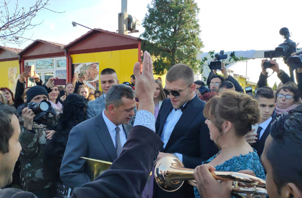 Ispred kuće njegove buduće supruge, Bogdane Rodić, vlada haotično slavlje