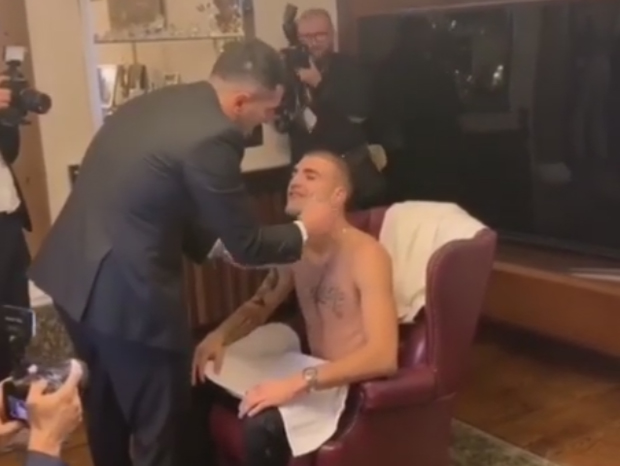 Prijatelji i članovi porodice, uključujući i njegovu majku Cecu i tetku Lidiju, sa osmehom su posmatrali ovaj čin i aplaudirali, a sve vreme je u pozadini išla muzika. Pogledajte kako je to izgledalo:
