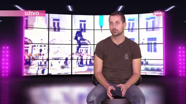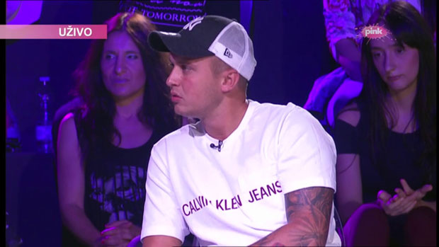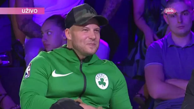 Po ulasku u studio, odmah je poklonio voditeljki Dušici znak kluba ,,Crvene zvezde" za koji oboje navijaju i time je oduševio.