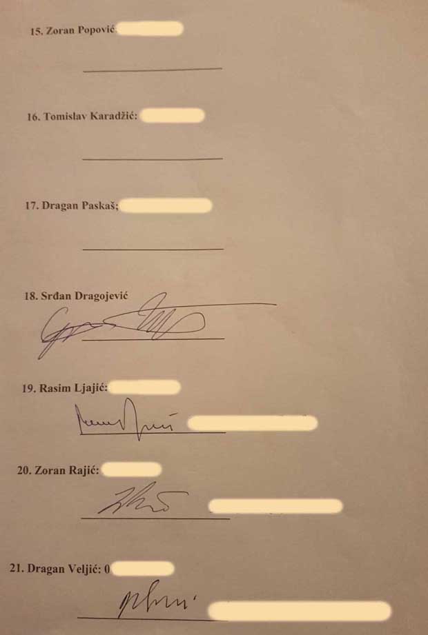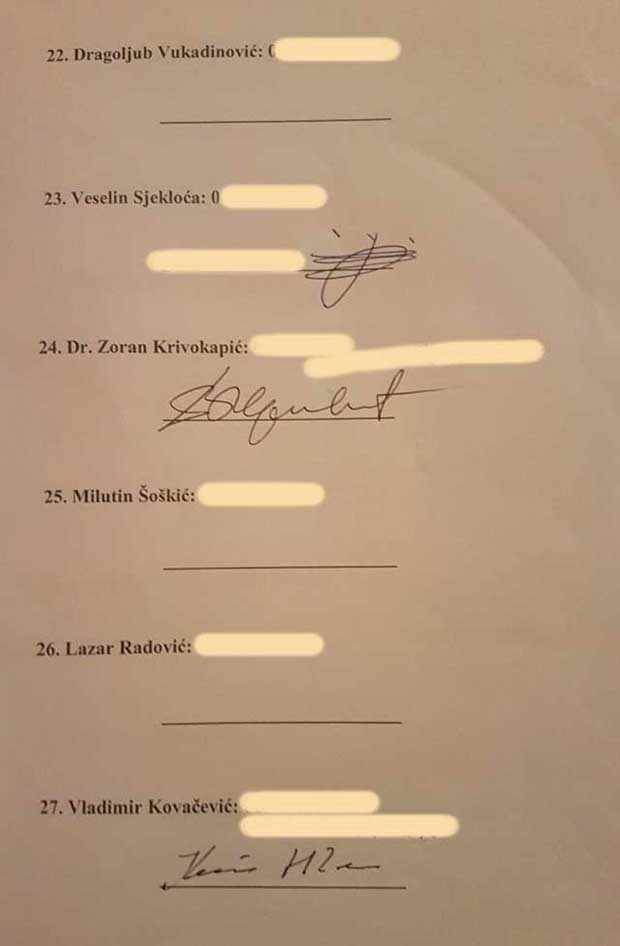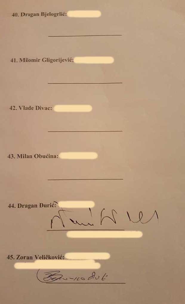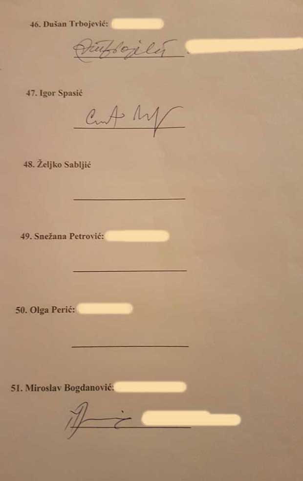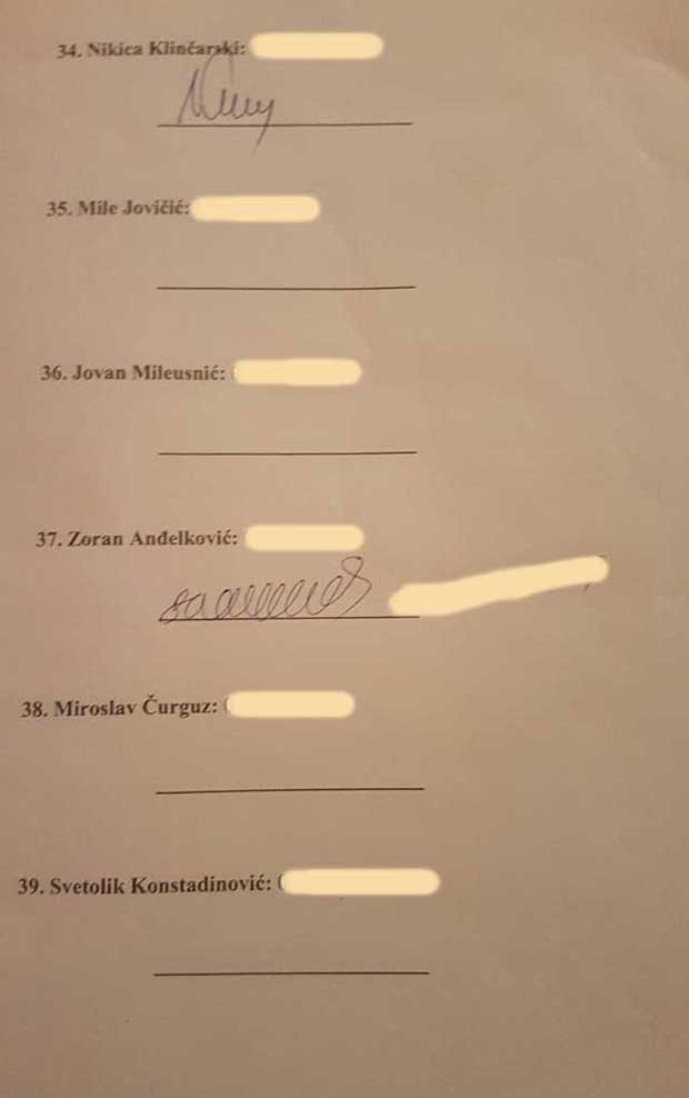 Ovi potpisi su za šta, blanko potpisi, potpisi za sazivanje Skupštine, potpisi za izbor Bjekovića, 65 potpisa razvučeni na ne znam koliko strana, ako stvarno ovo imaju, neka sutra izaberu Bjekovića. Ovo mi više deluje kao patka, gledaj Bakija Anđelkovića potpis, to nije potpis uopšte.