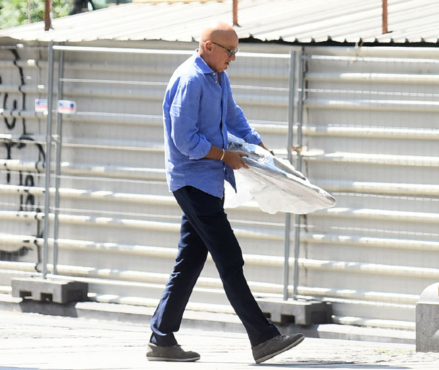 Slobodne letnje dane Slavoljub Muslin provodi u Beogradu, a objektiv foto-reportera "Novosti" Petra Miloševića "ulovio" ga je danas u centru grada sa daskom za peglanje u rukama