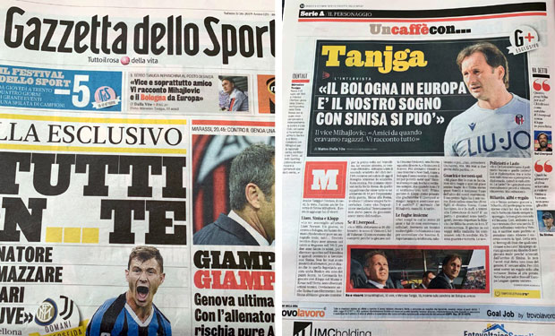 Tanjga, inače Mihajlovićev dugogodišnji prijatelj, saigrač i kum, trenutno uspešno vodi ekipu u Seriji A, ali ne krije da mu Mihajlović mnogo nedostaje.