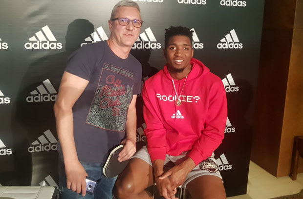 SENZACIONALNI “ruki” Jute Donovan Mičel, prvi kandidat za najboljeg NBA početnika i šampion u zakucavanjima na ol-star vikendu, u poseti je Beogradu kao jedan od ambasadora Adidasa. “Novosti” su danas imale mogućnost da odigraju “jedan na jedan” sa 21-godišnjim momkom i, sasvim izvesno, budućim superstarom, koji je u regularnom delu sezone prosečno beležio 20,5 poena (24,4 u plej-ofu).