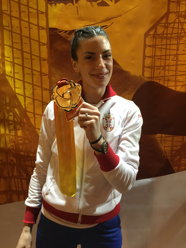 VELIKA takmičenja su za nju treninzi na kojima vežba skakutanje sa jednog stepenika postolja na drugi! Na šestom uzastopnom takmičenju je Ivana Španović osvojila medalju. Sa krova Evrope vinula se pravo u potkrovlje planete, a malo je nedostajalo da objedini titule evropske i svetske prvakinje u dvorani. Na SP u Portlandu je ranom zorom uzela srebro sa novim državnim rekordom u skoku udalj - 7,07 (prethodni 7,02 na otvorenom) i devetim najboljim ostvarenjem u istoriji ove discipline kod dama.