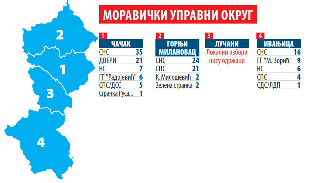 GORNjI MILANOVAC - O lokalnoj vlasti u srcu rudničko-takovskog kraja odlučivaće Zelena stranka i lista pod nazivom "Kristina Milošević - Stranka Rusa Srbije", odnosno njihova podrška socijalistima ili naprednjacima. Jer, iako su SPS i SNS dosad bili u koalicionoj vlasti, zapravo su jedni drugima bili opozicija, pa su male šanse da se takav apsurd produži. Naravno, pod uslovom da centrale stranaka ne odluče drugačije. M. B.