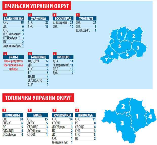 Osim u Vlasotincu i Nišu, ozbiljnijih prigovora na regularnost lokalnih izbora nije bilo, a eventualno ponovljena glasanja ne mogu bitno da poremete sastave lokalnih skupština.