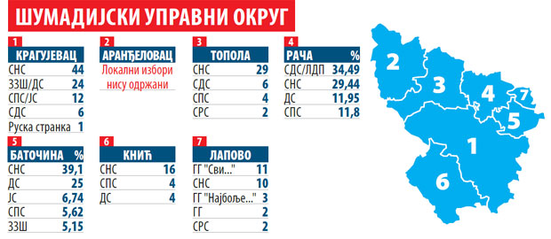 Drugoplasirana stranka "Zajedno za Srbiju", međutim, već je razgovarala sa predstavnicima liste pod nazivom "Pobedom za Šabac", koju predvodi "Zapadna Srbija", pa je gradonačelnik Nebojša Zelenović uveren da bitnijih promena u Šapcu neće ni biti. A. D.