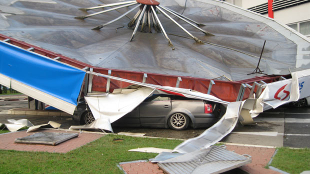 OLUJA NAPRAVILA HAOS: Krov benzinske pumpe pao na automobil u Novom Sadu, vozač u bolnici (FOTO)