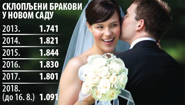 Broj sklopljenih brakova od 2013. blago je rastao do 2015. godine, kada je bio na vrhuncu. Tada je izgovoreno 1.844 sudbonosnih "da". U prvoj polovini ove godine sklopljeno je 917 brakova.
