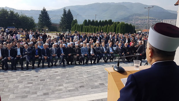 - Danas stojimo ispred mubarek objekta kada treba da otvorimo vrata jedne od najlepših džamija u regionu. Svi koji budu prolazili ovuda bez obzira kojoj veri pripadali, izazvani njenom očaravajućom lepotom i pozivom vere u jedinog boga, moraju podići glavu da pogledaju u neodoljivost i privlačnost ove božije kuće. A lepe i velike stvari se gledaju samo uzdignute glave. Ova džamija treba da služi svima onima koi su utkali bar zrno svoga truda, vremena ili novca u njenu izgradnju. Ona treba da služi i onima koji su lepo govorili o njoj - istakao je efendija Nadir Dacić.