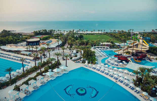 Hotel je izgrađen 2003. godine, renoviran je 2014. godine. Prostire se na 95.000m2. Glavna zgrada ima 9 spratova i oblik broda, dok je u bašti aneks zgrada sa family sobama. Hotel ima glavni restoran,3 à la carte restorana ,“Stela” snack restoran, turski šator, Midnight Snack, poslastičarnicu i 8 barova. Za “Submarine” disko hotelijeri vole da kažu da je poseban adut hotela.