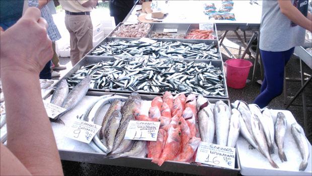 Pijaca je otvorena svakog ponedeljka i na njoj, bez preterivanja, ima svega. Brancin je osam evra, papalina tri, a orada 10 evra. Za kilogram maslina trebalo bi da izdvojite od 2,5 evra pa naviše. Pet litara kvalitetnog maslinovog ulja košta 25 evra.