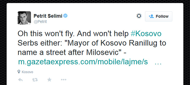 Влада самопрокламованог Косова требало би данас да разговара о иницијативи градоначелника Ранилуга Градимира Микића да улица у тој општини назове по Слободану Милошевићу
